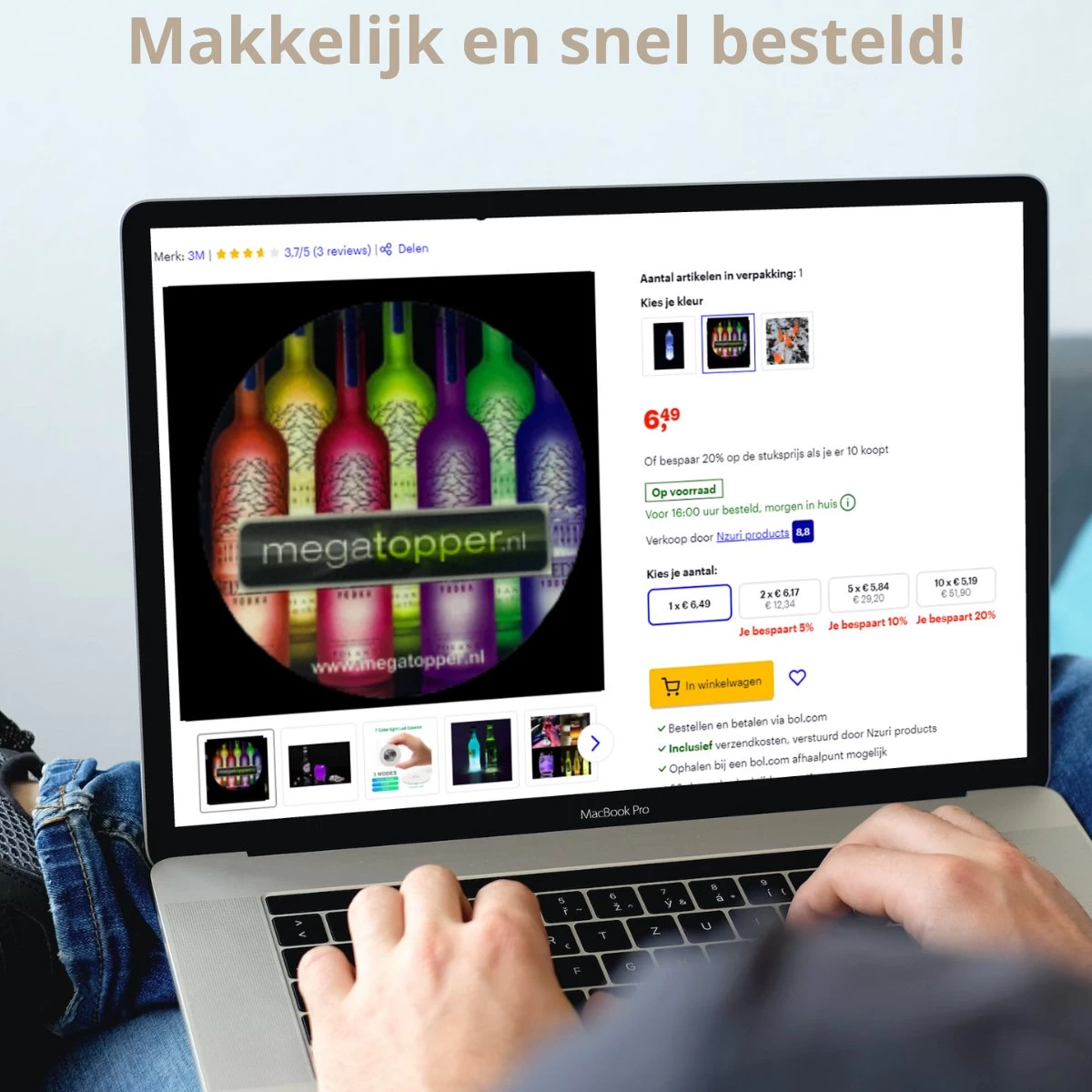 Met deze LED Onderzetter, kunt u genieten van een prachtige multicolor verlichting, die uw flessen een unieke en stijlvolle uitstraling geeft. De flexibele LED-sticker is een stuk eenvoudig te plaatsen en verwijderen, zodat u deze op elk moment kunt gebruiken.