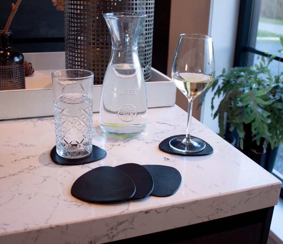 Door het hittebestendige en waterafstotende design kun je deze onderzetters blijven gebruiken.