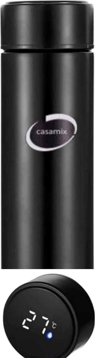 Merkloos Waterfles -Met Logo Casamix- Slimme Waterfles, Thermoskan (0,5L) Met LED Functie – Temperatuur Aflezen -Zwart – Thermosbeker – Isoleerfles – Thermoskan – Bidon Drinkfles – Koffiebeker – Drinkflessen – RVS – Smart Thermos