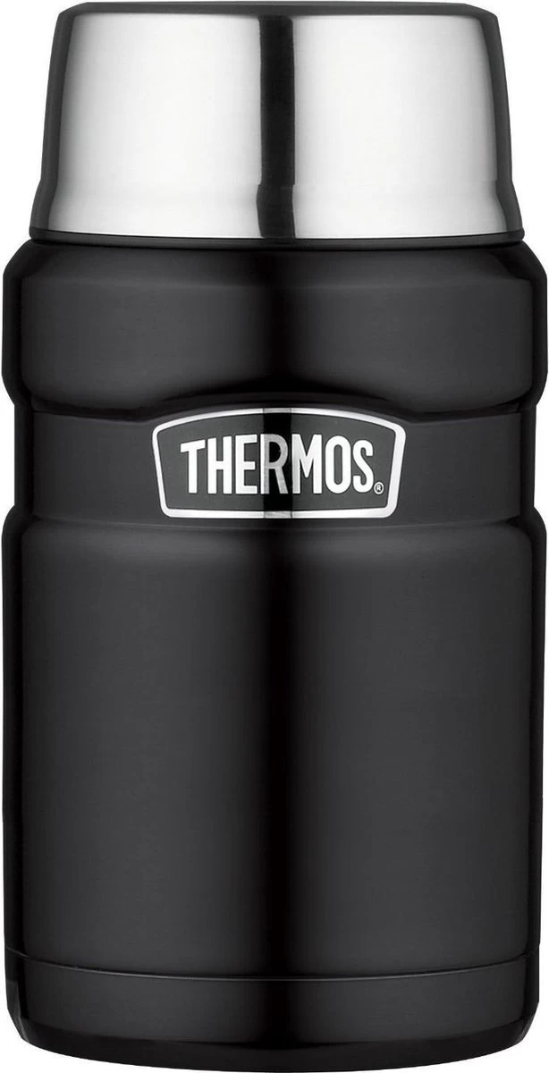 “Thermos King voedseldrager xl zwart mat 710 ml, een zeer stevige, handige voedseldrager die 9 uur warm en 12 uur koud houdt. De stevigheid en handigheid is te danken aan: